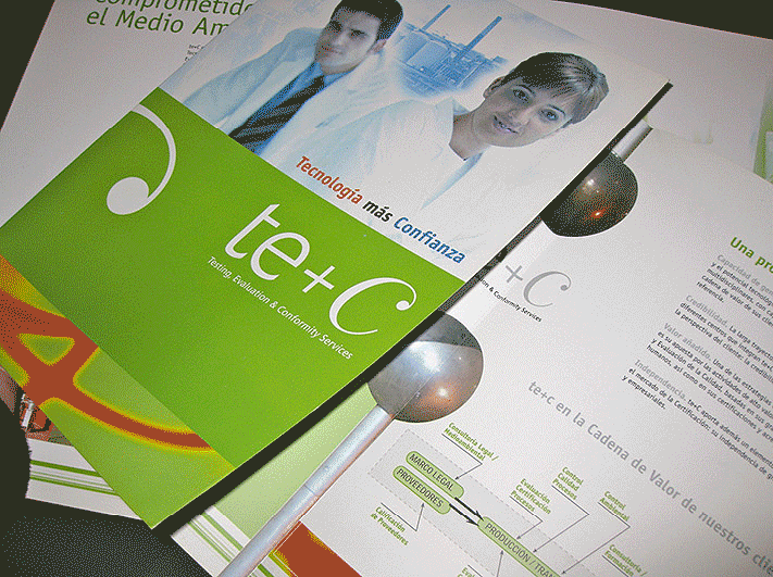 El caso es que, una vez más, obramos el milagro de la multiplicación de los textos y las fotos, y nos sacamos de la manga un tríptico que, en efecto, plasmaba con efectividad los valores de tecnología y confianza e incluso era capaz de gustar a un cliente tan exigente para sus cosas como son quienes se mueven en el sector de la Ingeniería.